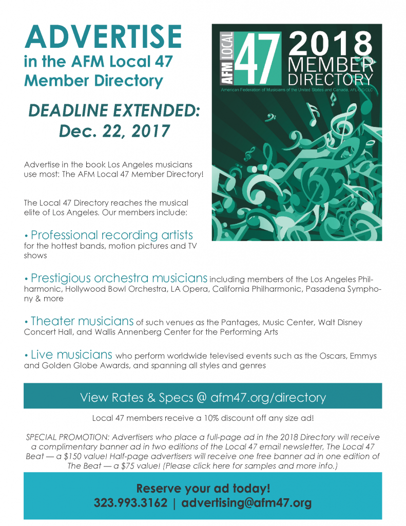 Advertise in the 2018 Member Directory – Deadline Extended to Dec. 22