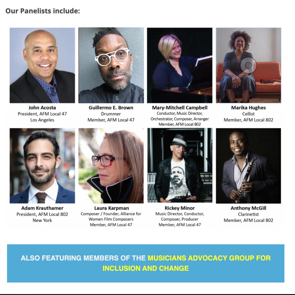AFM Local 47 (Los Angeles) and AFM Local 802 (New York) are proud to co-host the webinar panel discussion “Making Music and Making Progress: Strengthening our Union and the Music Industry’s Journey to Racial and Gender Justice.” Please join esteemed artists/Union leaders to discuss our community’s journey to advance equity and justice. Our topics include: