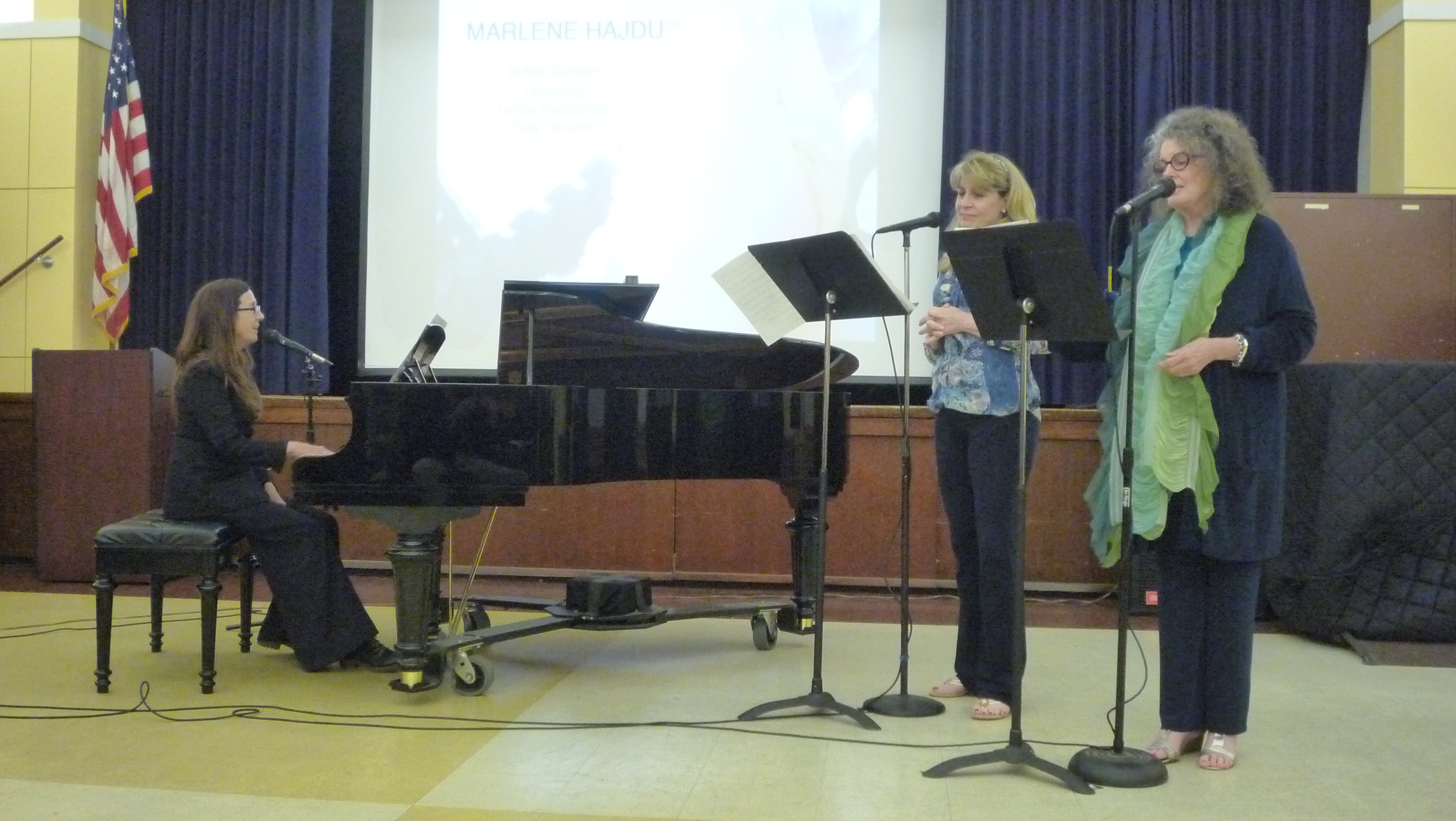 Marlene Hajdu, Elise Michelle, and Carolyn Yarnell addressing the audience at the ASMAC FIRST WEDNESDAYS workshop highlighting women composers on May 4. (Photos courtesy Marlene Hajdu)