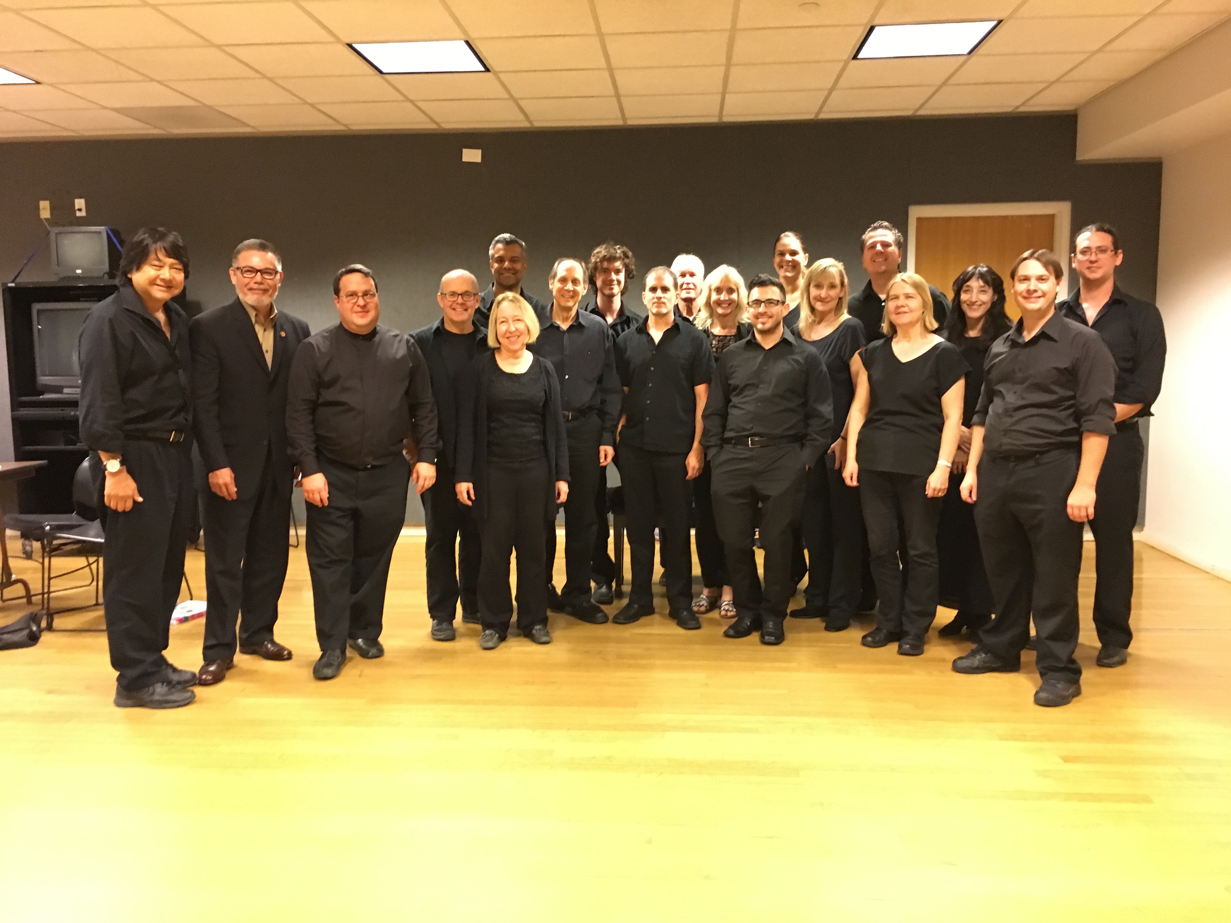 Local 47 Live Business Rep Michael A. Ankney (second from left) visited the Cabrillo Music Theatre Orchestra musicians at a recent production of “Evita” at the Kavli.