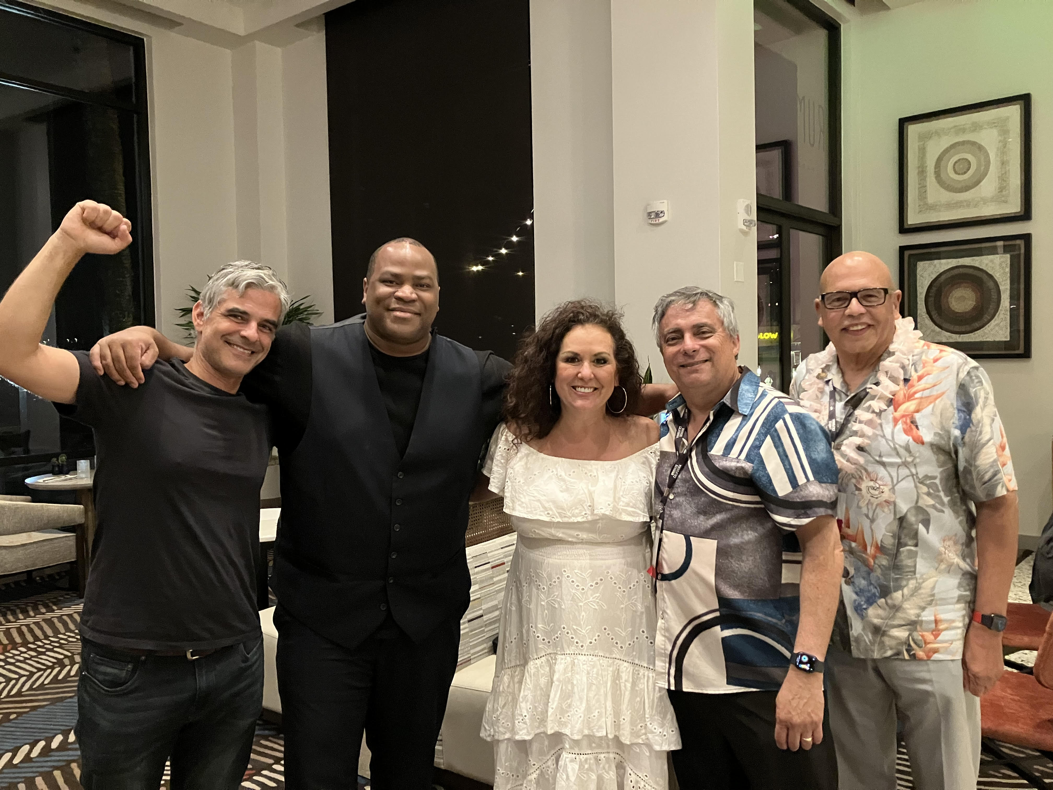 Musicians United, 2024 CA Labor Fed Convention style: AFM Local 47 Organizer Rahul Neuman, Local 47 member Sidney Hopson, California Labor Federation President Lorena Gonzales, AFM Local 7 (Orange County) President Edmund Velasco, and AFM Local 6 (San Francisco) Executive Board member John Fisher.
