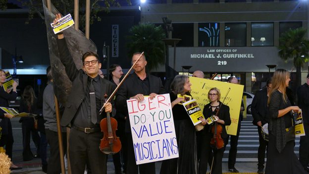 GLENDALE, CA (Oct. 2, 2019) — On Tuesday night more than 50 musicians held a flash-mob musical street performance outside of Disney CEO Bob Iger’s book signing event at the Alex Theatre as part of the grassroots #BandTogether campaign to demand that Disney and other major film and television studios improve standards for musicians’ work in new media. Continue reading