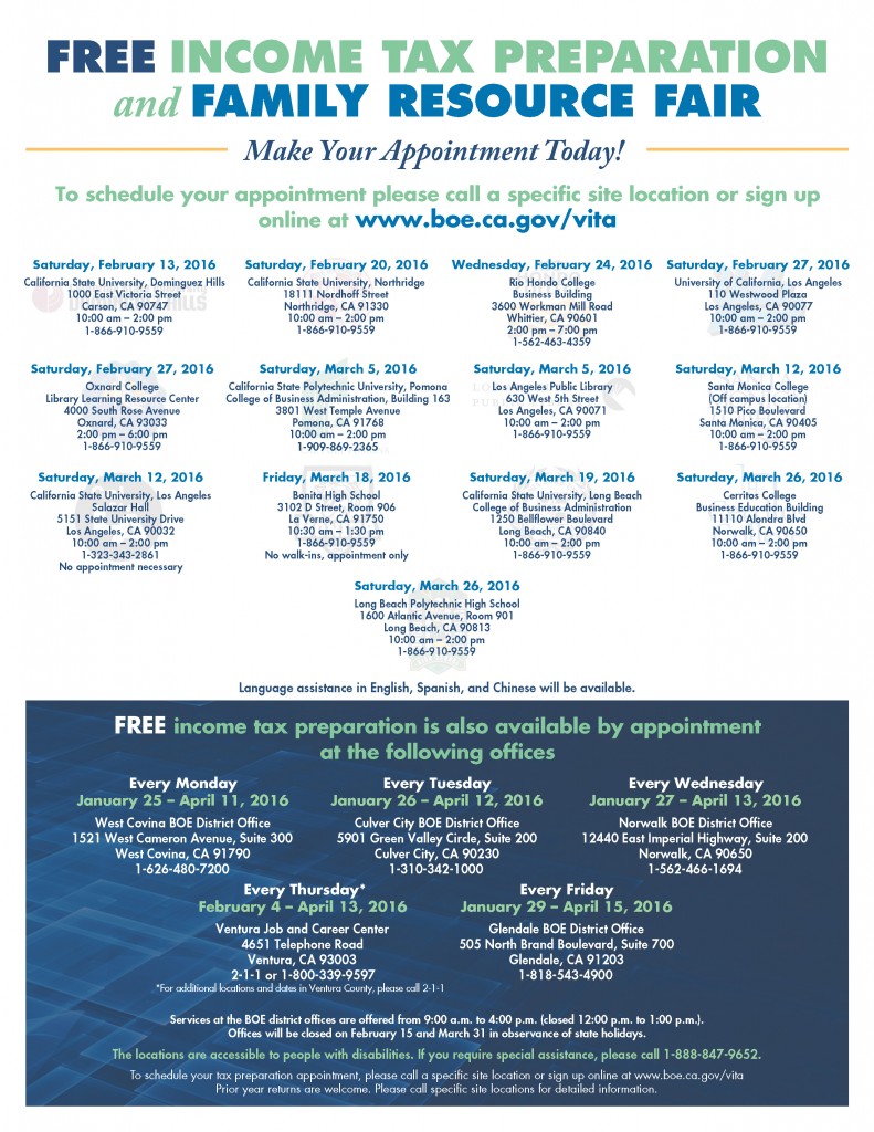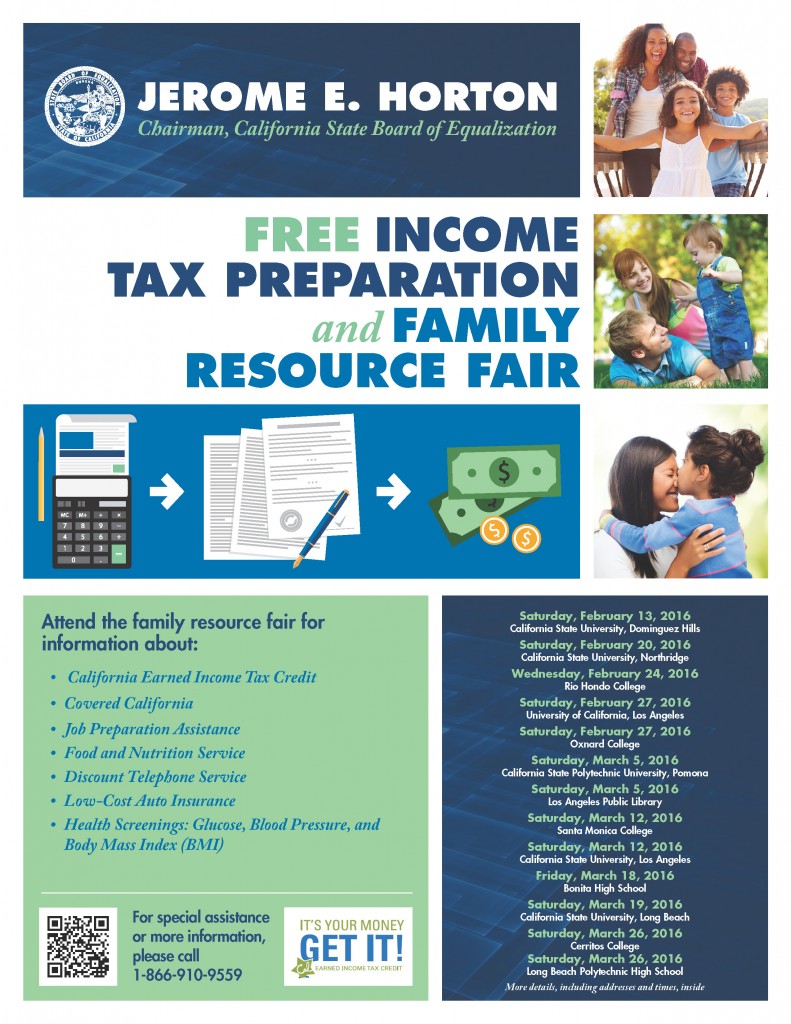 Thousands of dollars could be yours this tax season thanks to the state and federal earned income tax credit. The Board of Equalization and Chairman Jerome E. Horton will host Volunteer Income Tax Assistance (VITA) events where low-to-moderate income families will be eligible to file their taxes for free.