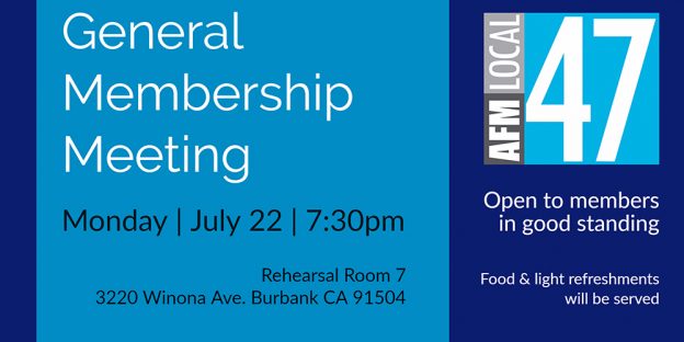 During the meeting there will be a special election to fill a vacancy on the Executive Board, currently held temporarily by P. Blake Cooper as appointed by the Board. For information on Vacancies and Special Elections, please refer to Articles IX and X of the AFM Local 47 Bylaws, available in the members section of our website or upon request from the Secretary/Treasurer’s Office.