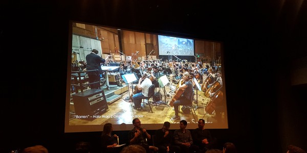 “Halo Wars 2” video game composers Gordy Haab, Brian Trifon and Brian Lee White, along with audio director Paul Lipson, took to the stage at the American Film Institute in Los Angeles on the evening of Oct. 25, 2017 to discuss share their vision and process for creating the score for one of the world’s largest and most beloved game franchises.
