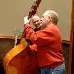 At the Bridge Recording on May 9, “Simpsons” orchestra musicians surprised composer Alf Clausen with a cake to celebrate his 25 years writing music for the series. Photos by Gayle Levant.