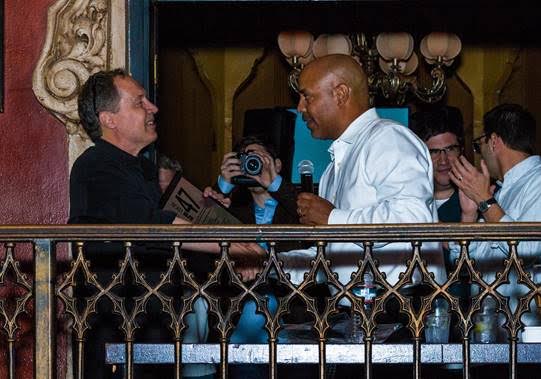 AFM Local 47 President John Acosta (right) presents Mark Isham with a congratulatory award to ABC and all the “Once Upon a Time” composers for bringing music-scoring work to Los Angeles musicians for several seasons.