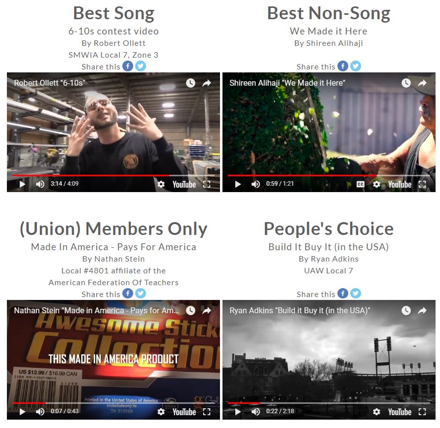 “This song combines my passion for music with my core belief that we need to buy goods that are union made and Made in the USA. It’s personal to me because I have a family and I want the next generation to thrive and have opportunities,” said Ryan Adkins of Warren, Michigan. His video, “Build It Buy It (in the USA),” won the People’s Choice award.