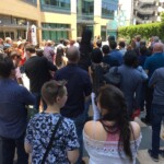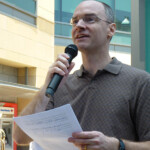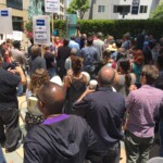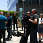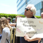 Musicians marched to the front doors of the Alliance of Motion Picture and Television Producers to hand-deliver hundreds of petitions signed by musicians who work in the industry, where studio representatives denied them entrance. “They are in this building and they are willing to deny us behind closed doors, but they will not do it in the open,” said musician and organizing committee member Jason Poss. “They will receive these petitions, even though they don’t want to receive them today. This is a victory. We have shown what is going on and they cannot hide from us any longer. This is just the beginning.”