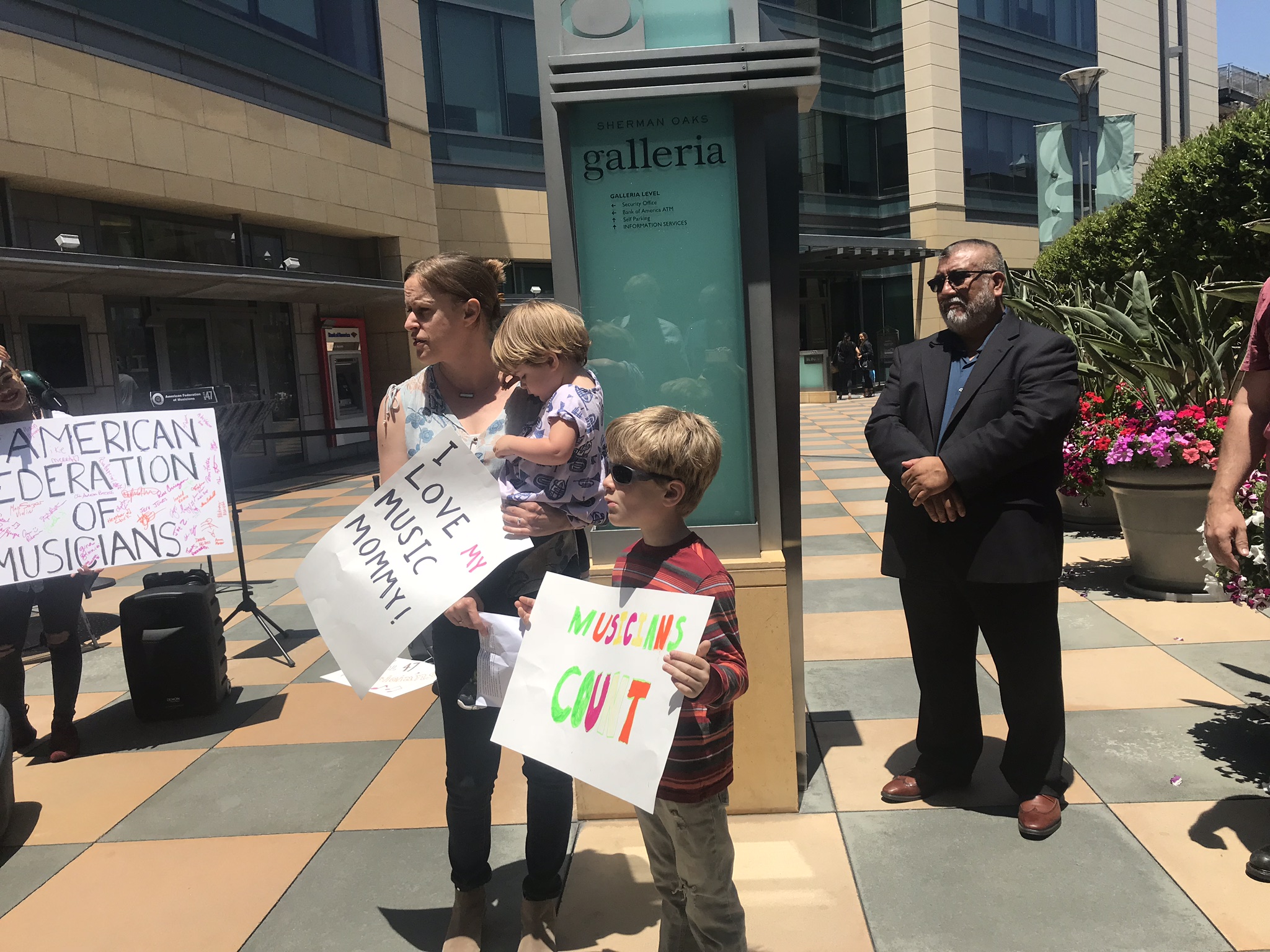 SHERMAN OAKS, CA (June 27, 2019) — Today more than 100 professional musicians who work in film and television held a press conference and delivered stacks of petition signatures to the entertainment industry’s major producers demanding a fair contract, including residuals, for new media.