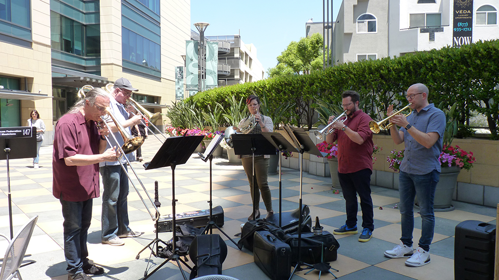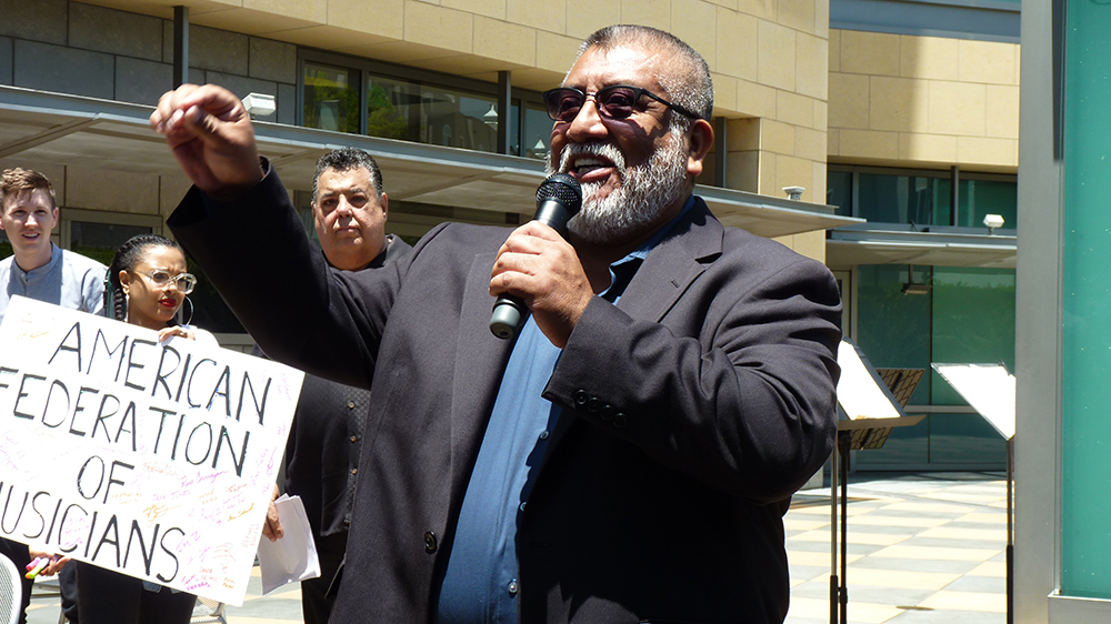 The rally and press conference included musicians, a live brass quintet, and allies from United Teachers Los Angeles, Writers Guild of America West and SAG-AFTRA. “Many of Los Angeles’s teachers are also professional musicians, and almost every musician is a teacher for someone,” said Juan Ramirez, vice president of UTLA. “United Teachers Los Angeles stands together with the professional musicians in demanding that musicians working on streaming and new media projects receive fair pay and residuals.”
