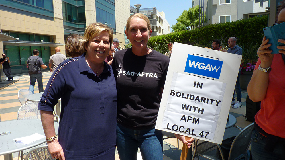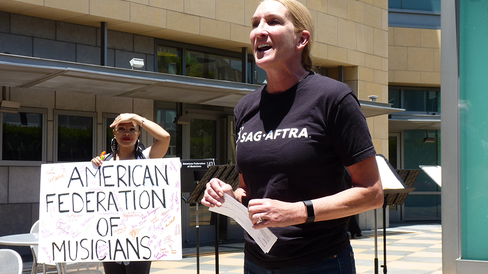 “All 160,000 members of SAG-AFTRA stand united with you for good pay and fair working conditions,” said Jane Austin, SAG-AFTRA national secretary-treasurer and president of their Los Angeles chapter. “It’s not new media. It’s now media. And it’s time that they start paying. We’re all artists and performers, and it doesn’t matter if we’re in front of the camera, behind the mic or playing an instrument. We all deserve fair compensation regardless of what platform on which our work is being displayed.”