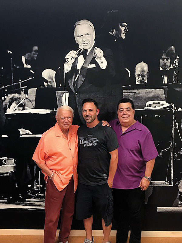 Jerry Sharell, his son Jeff and Vice President Rick Baptist in front of the Frank Sinatra mural at AFM Local 47.