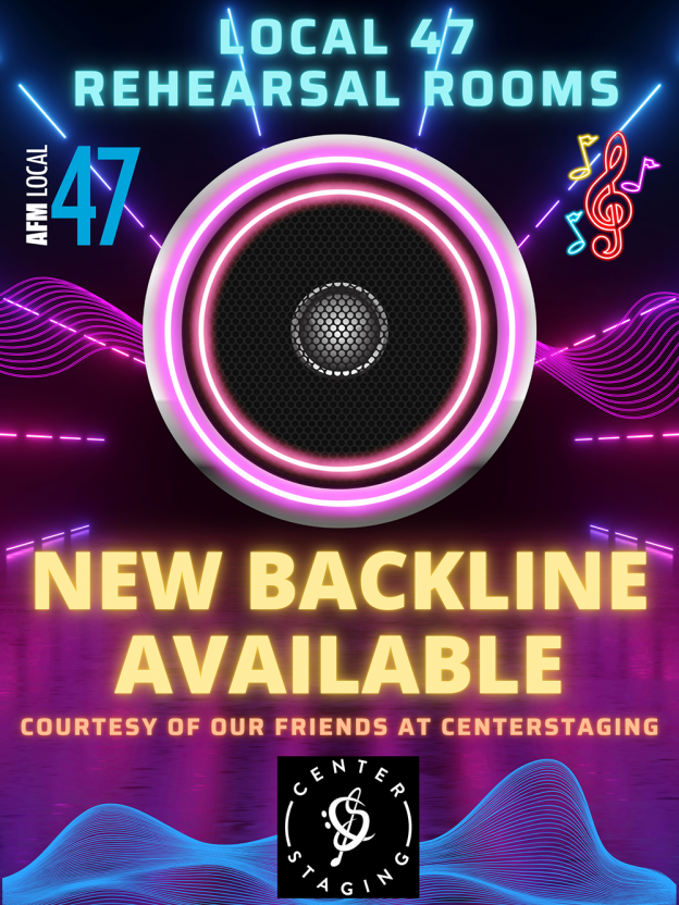 AFM Local 47 would like to thank our neighbor CenterStaging for generously donating four bass amps to our rehearsal room backline. A bass amp stack — from brands like Gallien Krueger, SWR, and TC Electronics — will now be stationed in Rooms 3, 4, 5, 6, and 7.