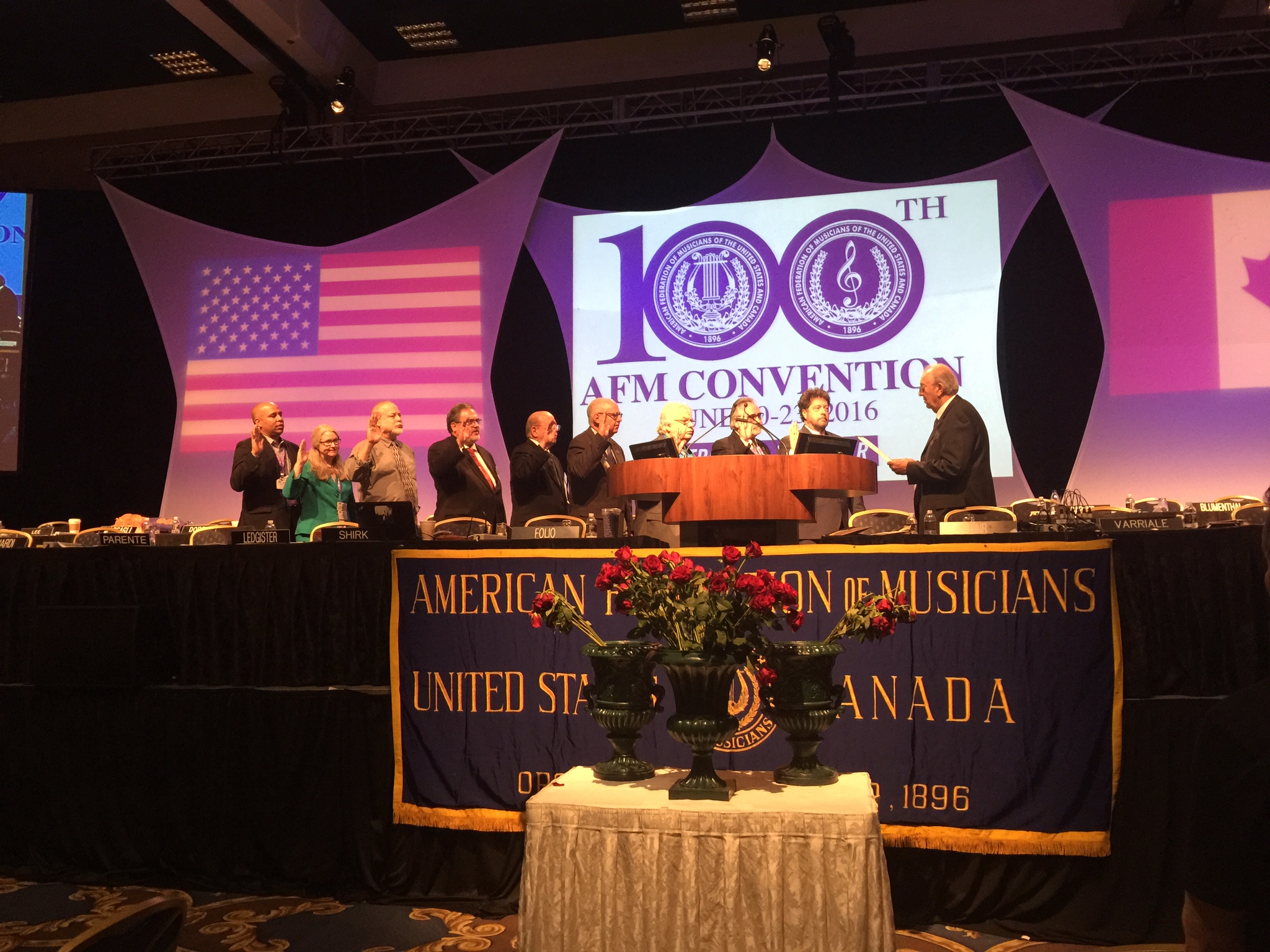 The new AFM International Executive Board members - including our own President John Acosta - being sworn in at the 100th Convention. (Photo: Bonnie Janofsky)