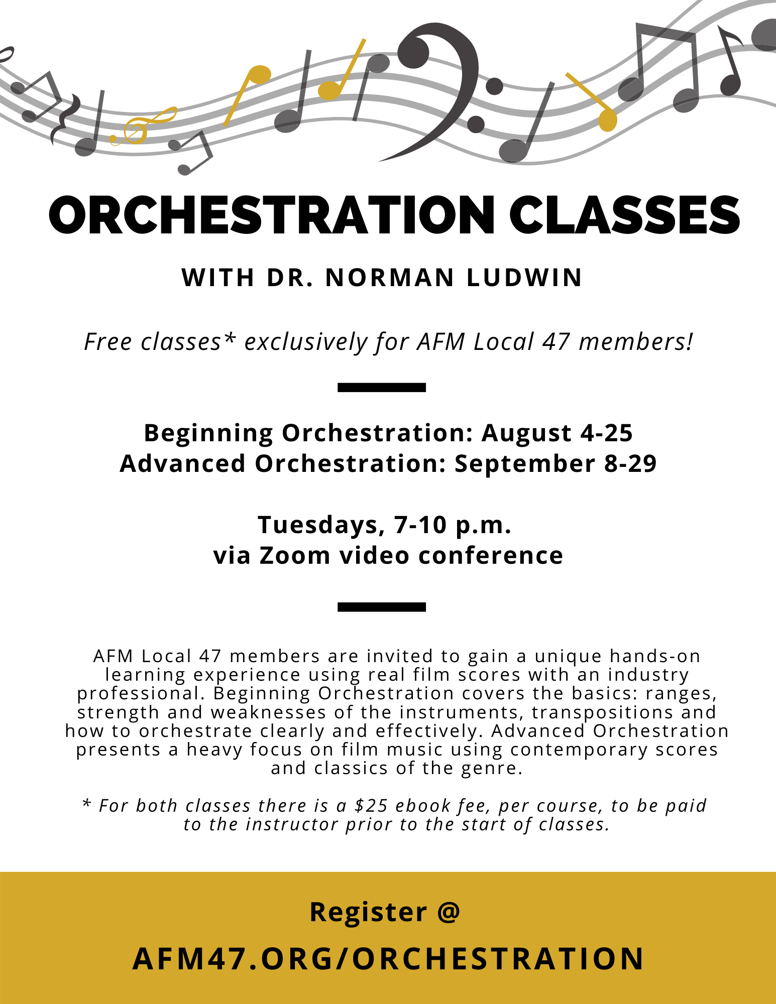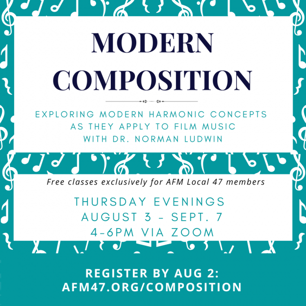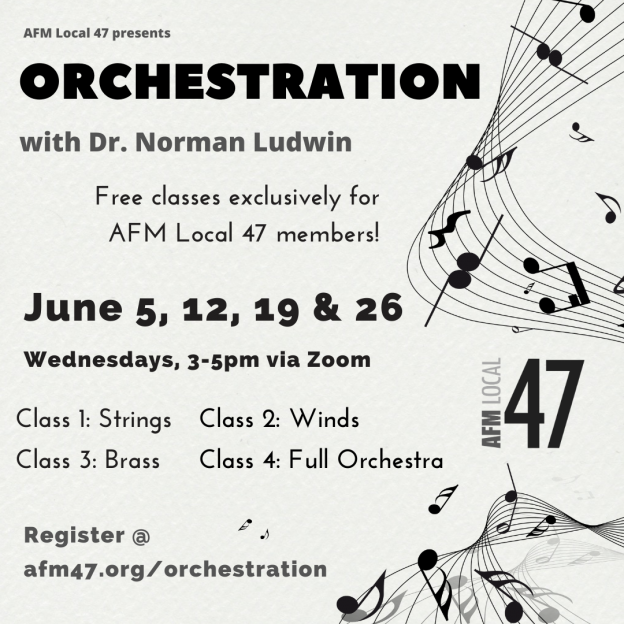 This interactive Zoom master class takes place on Thursday, July 17, 2025 from 3-5 p.m. Zoom registration is available to AFM Local 47 members in good standing. Once your membership has been verified, you will receive the Zoom link.