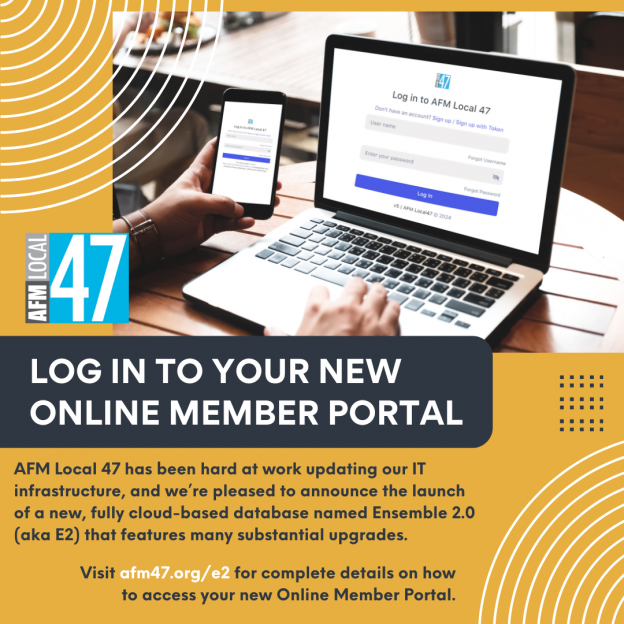 We are pleased to announce that Ensemble 2.0 (aka E2), AFM Local 47’s new cloud-based member and contract database, is now live.