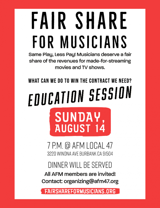 AFM will be joined by members and representatives from SAG-AFTRA, the Teamsters, IATSE, WGA and the LA County Federation of Labor. Continue reading