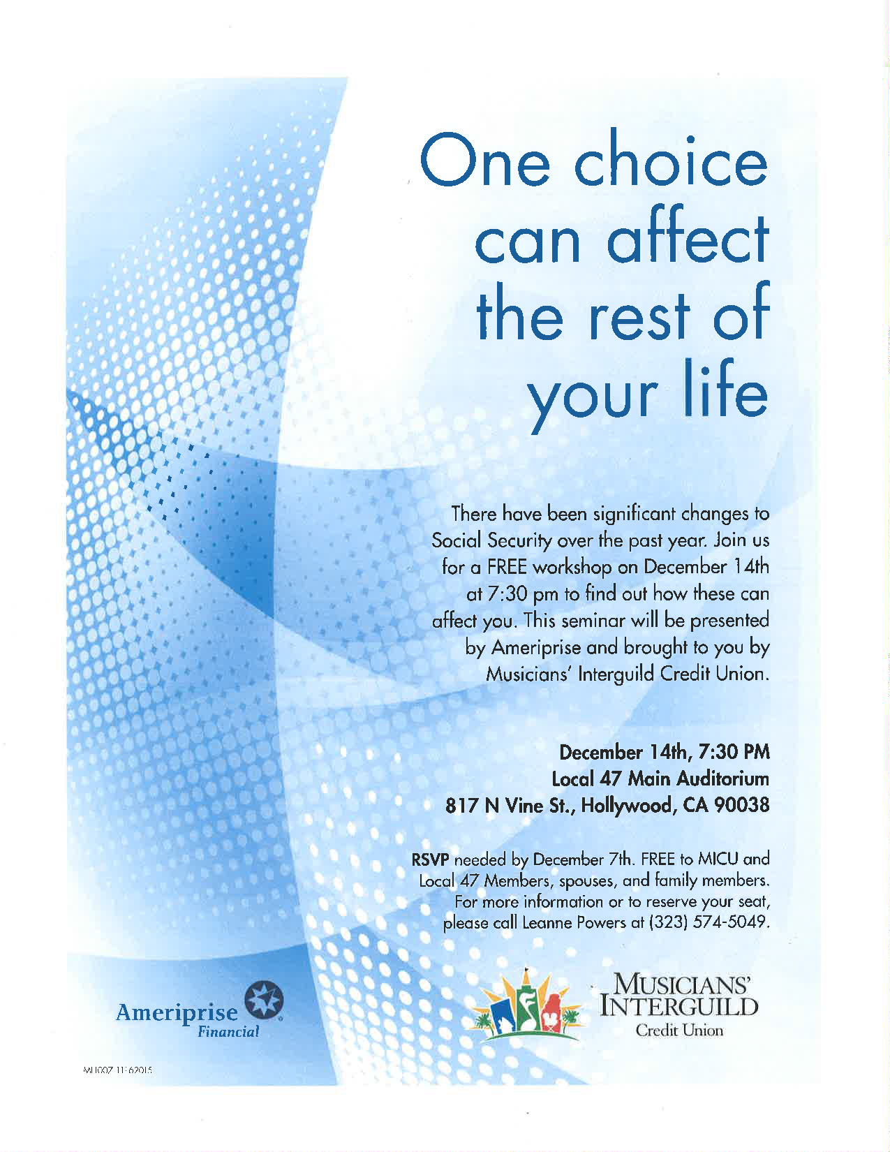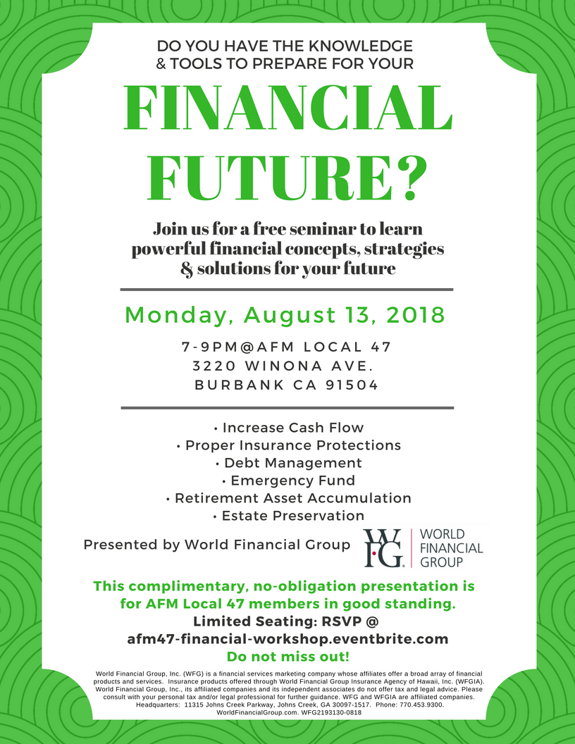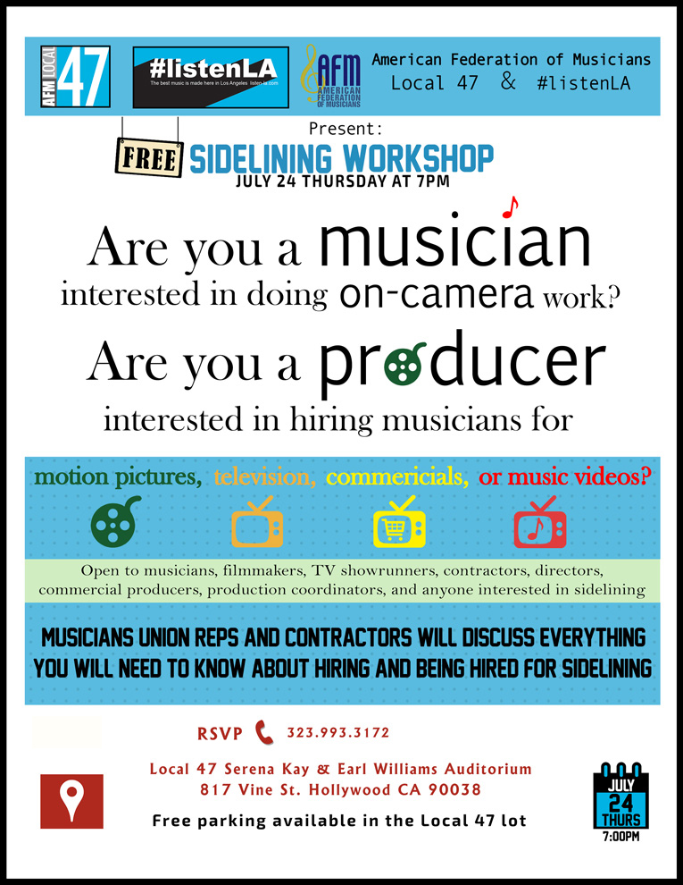 ** PLEASE NOTE: THIS EVENT IS ONLY OPEN TO AFM LOCAL 47 MEMBERS IN GOOD STANDING. YOU MUST BE A CURRENT MEMBER TO BE ADMITTED TO THIS EVENT. **
