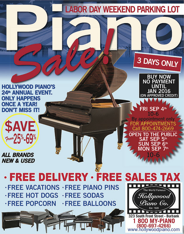 “As a longtime supporter of the AFM Local 47, I’m always looking for ways in which we can help our cause as musicians. This weekend is our 24th annual Labor Day Parking Lot Piano Sale. Everyone who purchases a piano and mentions Local 47, we will to donate 5% of each sale to Local 47! Continue reading