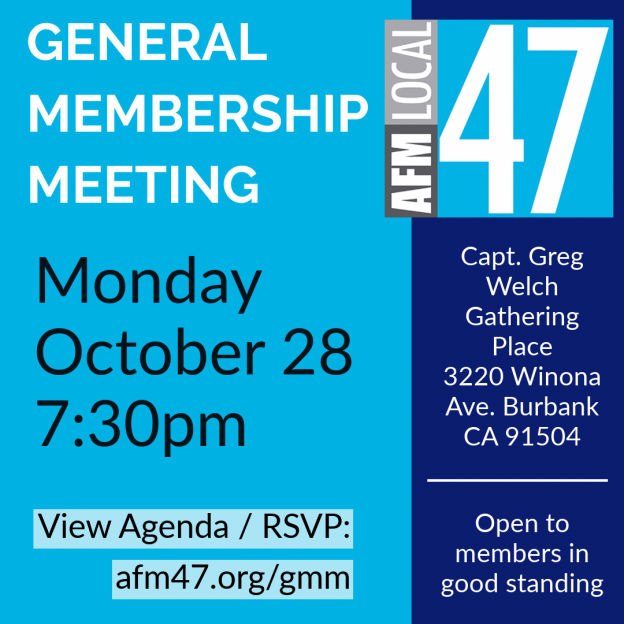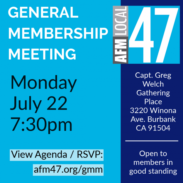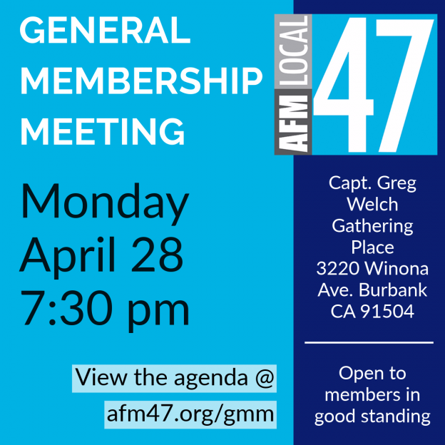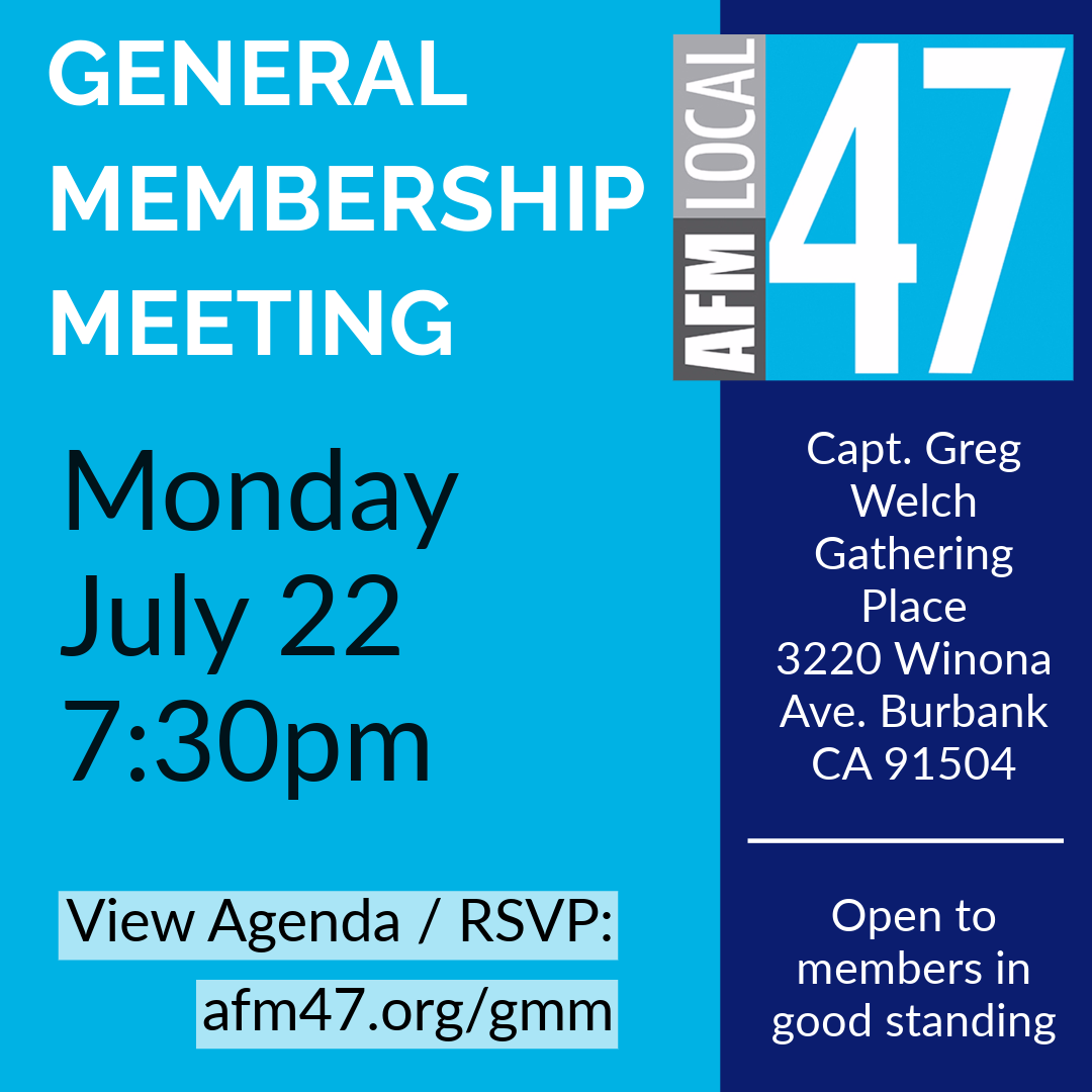 Open to all AFM Local 47 members in good standing. Light refreshments will be served.