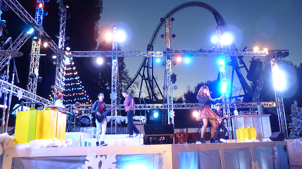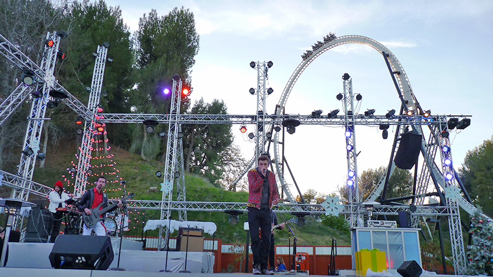 In December, we dropped by Six Flags Magic Mountain in Valencia to check out the Local 47 rock band performing at the theme park’s “Snowy Nights” evening concerts.