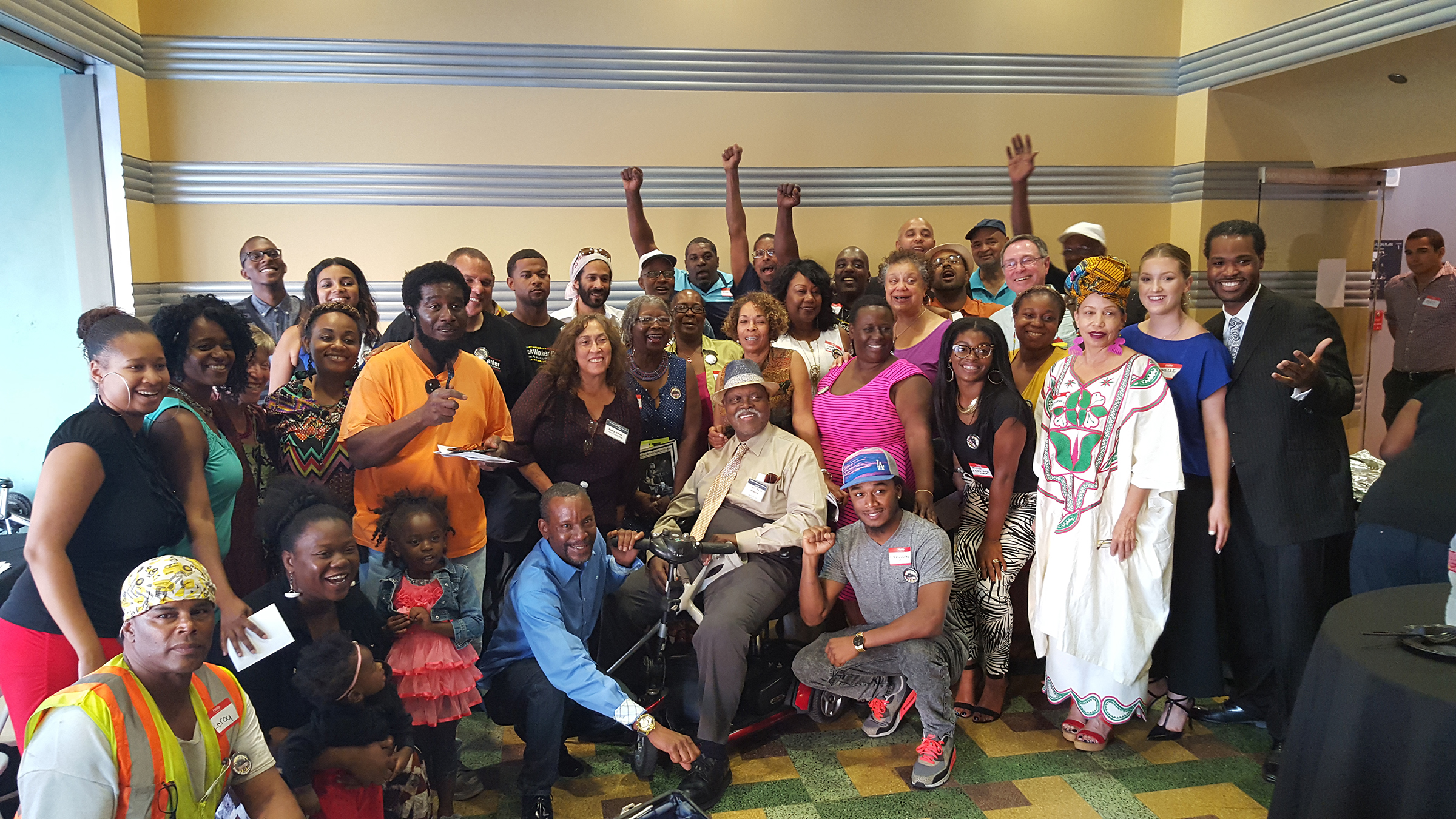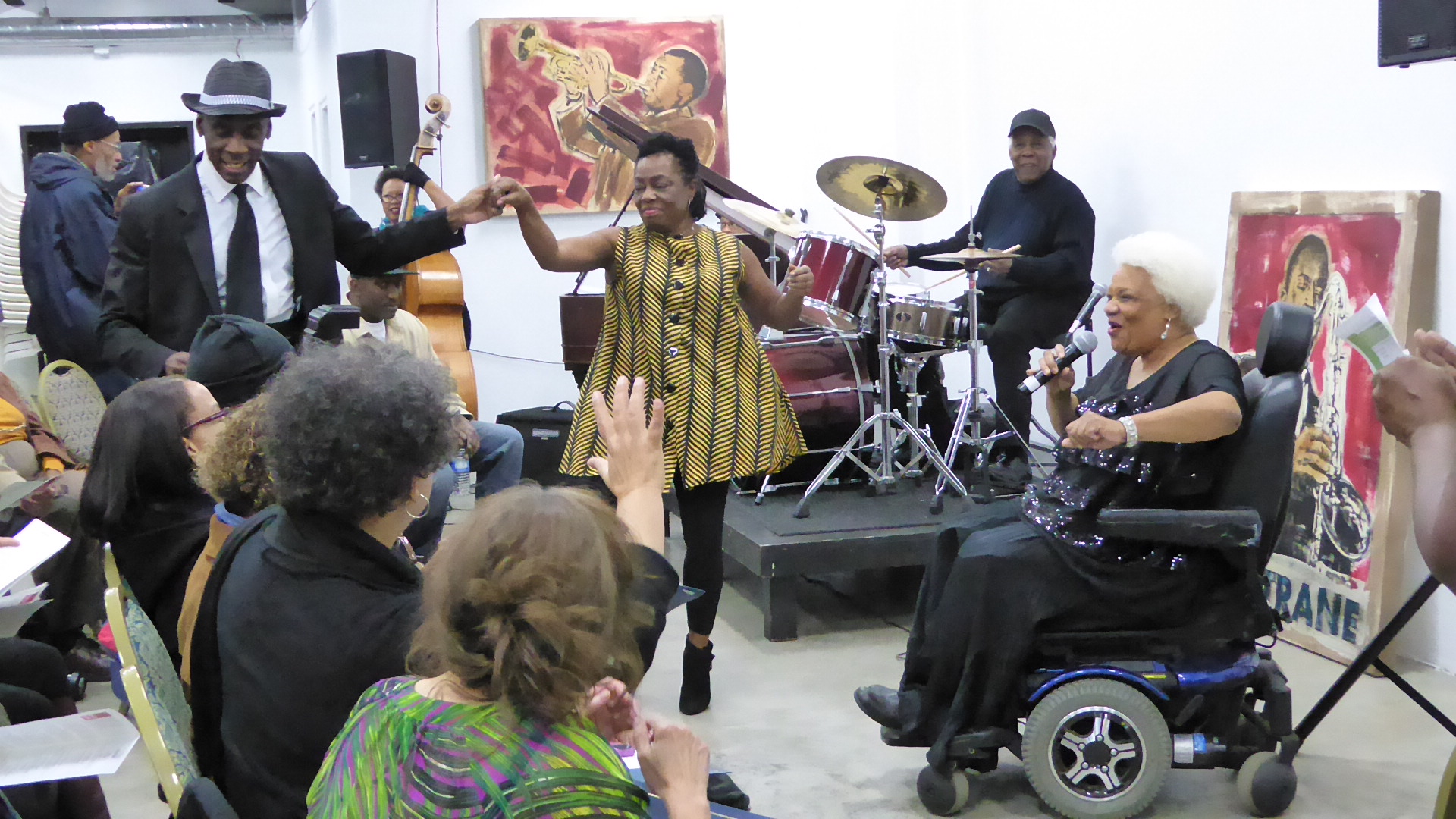 Rhythm Club President, Marl – pictured with Musicians’ Club Secretary Maury Paul (left), NAACP Secretary Lester Bailey (standing, center) and Rhythm Club Secretary Estelle Edson (right) – signs the final document transferring Local 767 Rhythm Club assets to the Local 47 Musicians’ Club of Los Angeles in March of 1953, marking the final step in the amalgamation of the two Locals. (Photo: AFM Local 47 Overture archives)