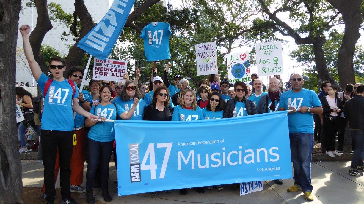 Musicians marched alongside hundreds of thousands of fellow union members, community activists, and supporters in the Women’s March Los Angeles Saturday, January 21, 2017.