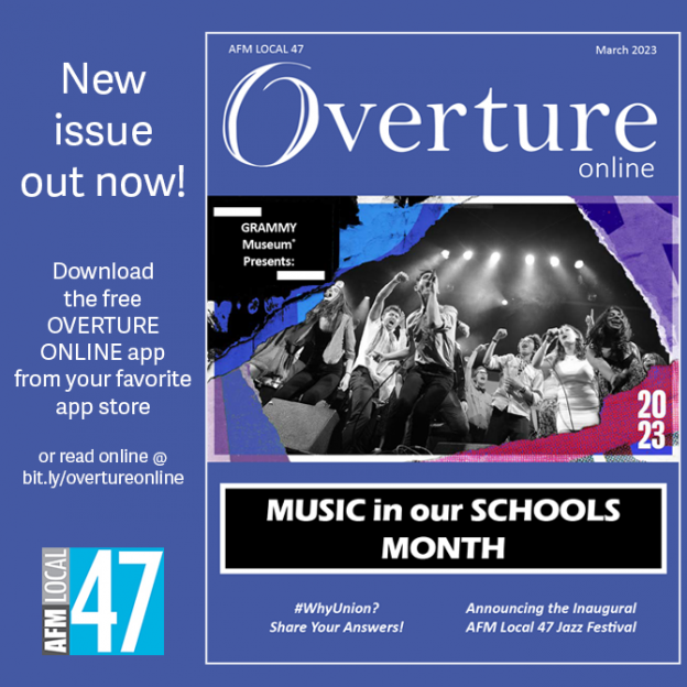 Overture Online is optimized for reading via smartphone or tablet. For those without access to a smart device, issues may be viewed on a web browser here. Local 47 members may download archived pdf versions from the members section at afm47.org.