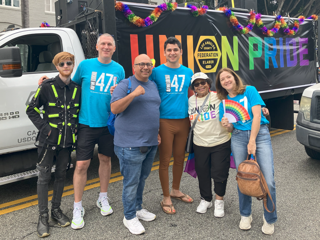Our local labor community enjoyed a fun-filled day of solidarity at the 2024 Los Angeles Pride Parade in WeHo on Sunday, June 2. AFM Local 47 Organizer Rahul Neuman and members David Horne, Nick Cazares, and Amy Hershberger joined in the festivities alongside friends from the LA County Federation of Labor and members from many other unions throughout the region.