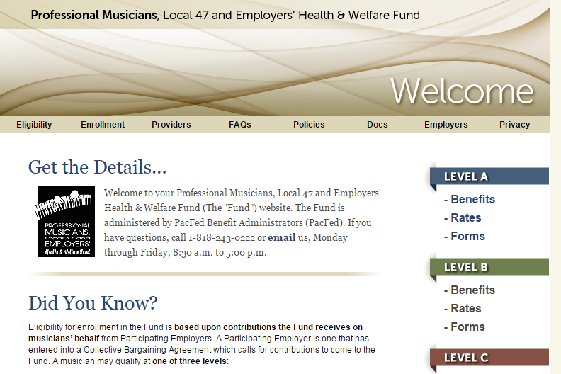 The Board of Trustees of the Professional Musicians, Local 47 and Employers’ Health & Welfare Fund (the “Fund”) is committed to providing the best health insurance delivery and cost platforms available to the Fund’s participants. In furtherance of that goal, and as reviewed in this article, the Fund has modified its benefit plan menu with reference to the Fund’s Life Insurance, Dental Insurance and Vision Insurance Plans. Continue reading