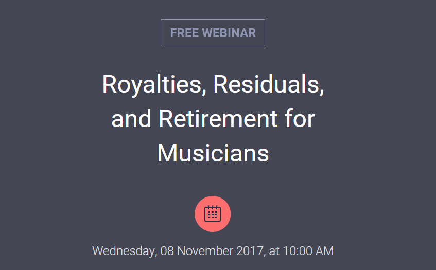ProMusicDB invites you to attend our FREE “Royalties, Residuals, and Retirement” Webinar with Jeff Hammer of Northwestern Mutual on Wednesday, Nov. 8, 10 a.m. PST.
