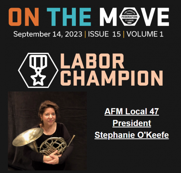AFM Local 47 President Stephanie O’Keefe was the latest labor champion to be featured by the Los Angeles County Federation of Labor in the 9/14/2023 edition of the “On the Move” newsletter. The article is reprinted below. Continue reading