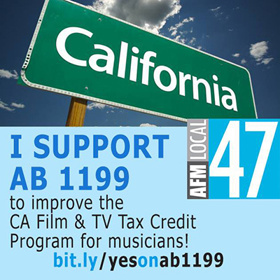 To learn more about this important work, visit our AB 1199 blog. If you’d like to get involved, sign up for Local 47 Action Alerts or call Merideth at 323.993.3143 to stay posted to future developments on this and other news that affects California musicians.